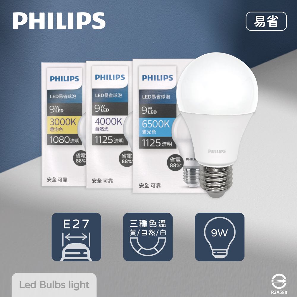 PHILIPS飛利浦LED E27 9W燈泡 白光/黃光/自然光