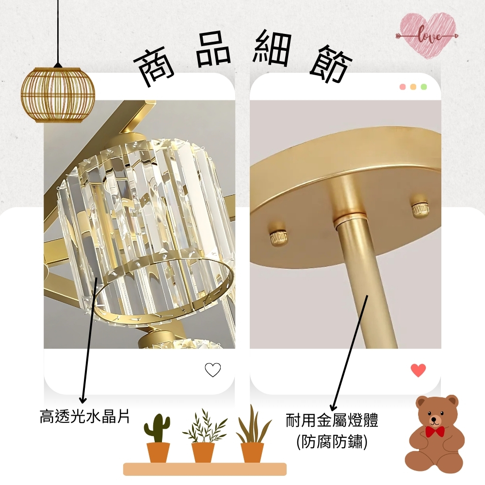 金屬燈體、水晶片燈罩