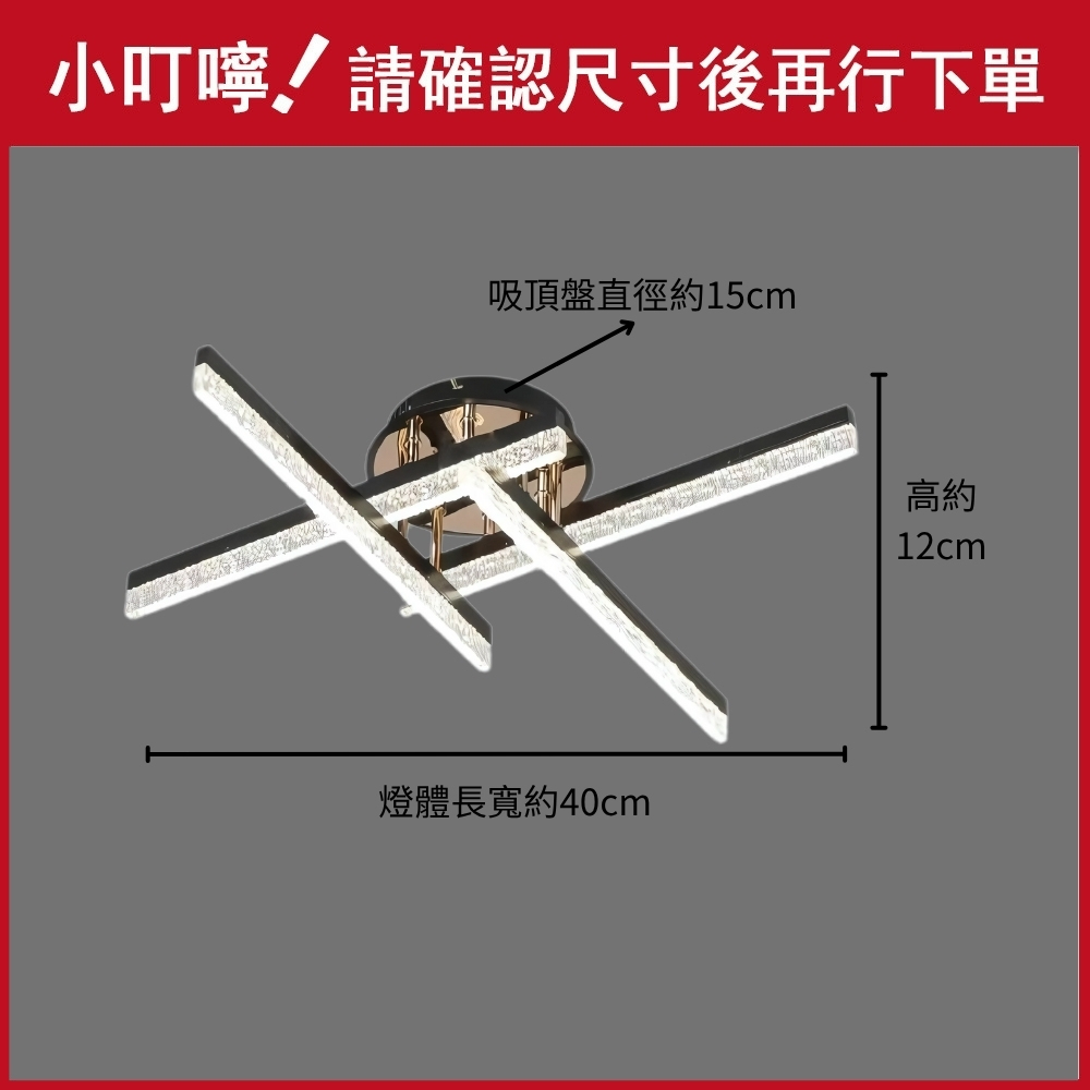 品名 LED 36W 迎燦調光調色吸頂燈 (附遙控器) 材質 金屬燈體、壓克力燈罩 尺寸 燈體總長寬約40cm * 高度約12cm 吸頂盤直徑約15cm 光源 內附LED 36W光源 (附遙控器/可調光調色) 適用 約3-4坪