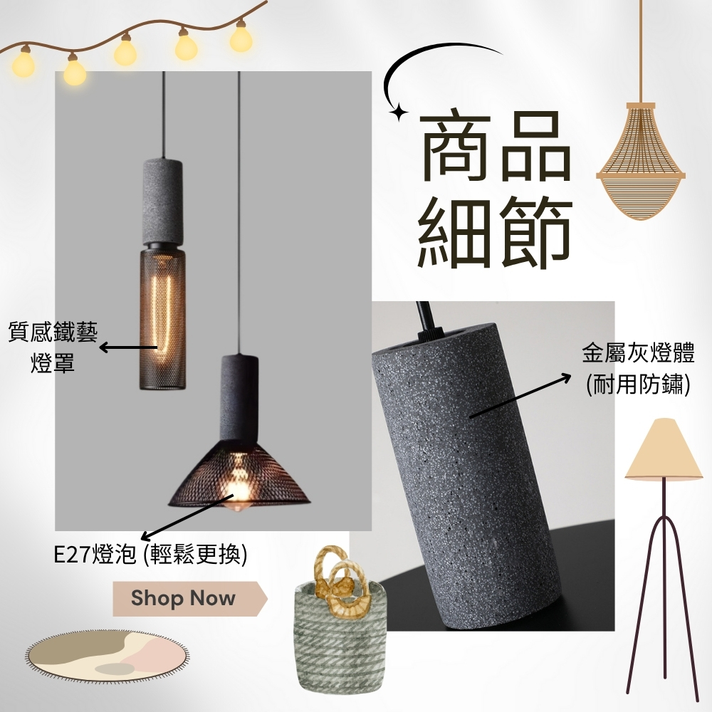 品名 凱爾達 2 吊燈 (附LED燈泡) 材質 金屬燈體 + 鐵藝燈罩 尺寸 燈體總長約25cm * 吸頂盤直徑約20cm (附線約90cm 可縮短調整) 光源 附LED工業風燈泡*2 適用 適用約2-3坪