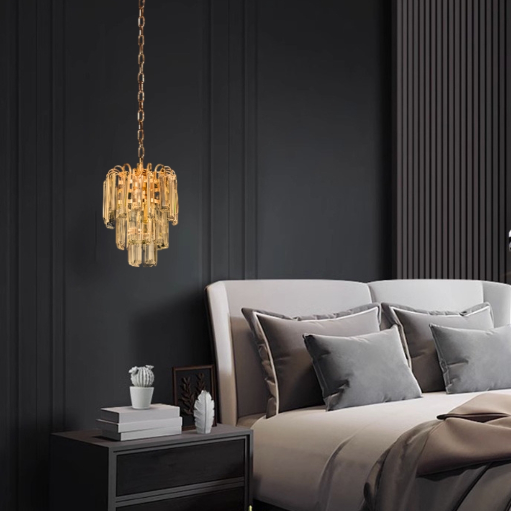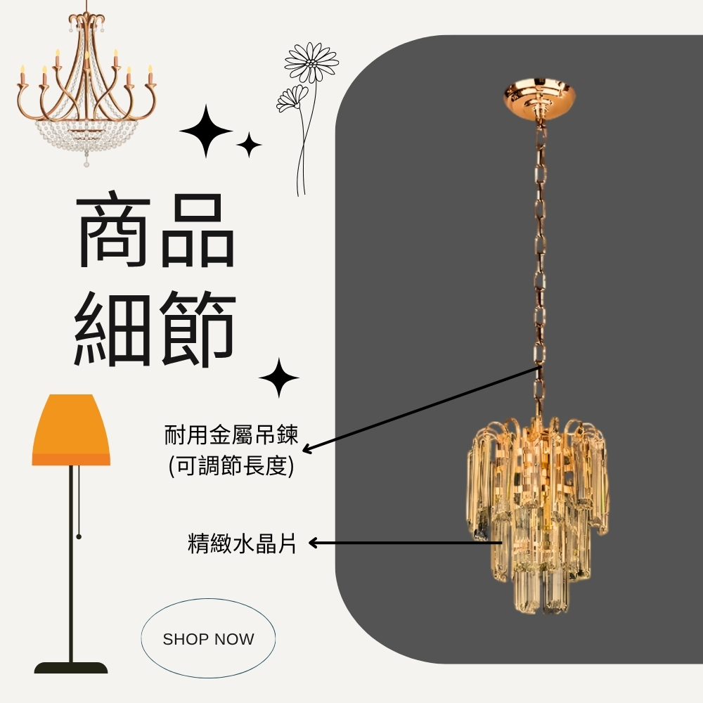 材質 金屬燈體、水晶片燈罩