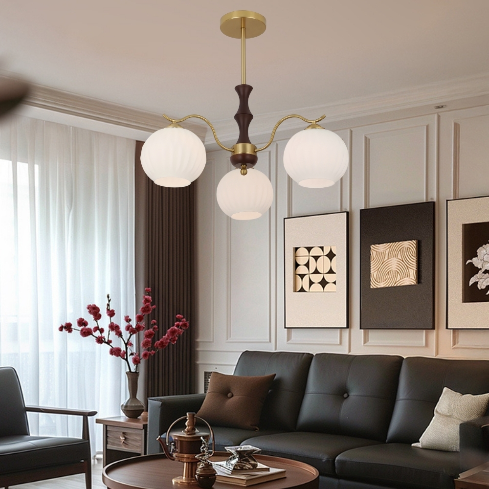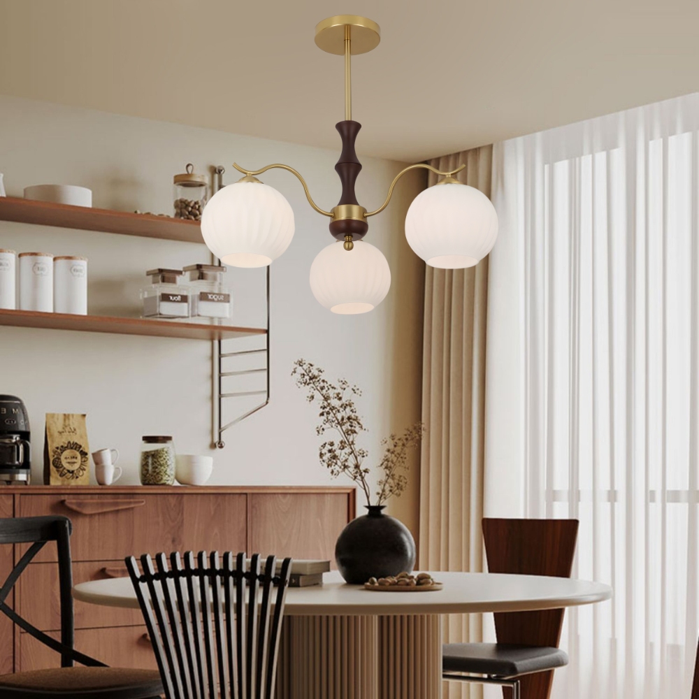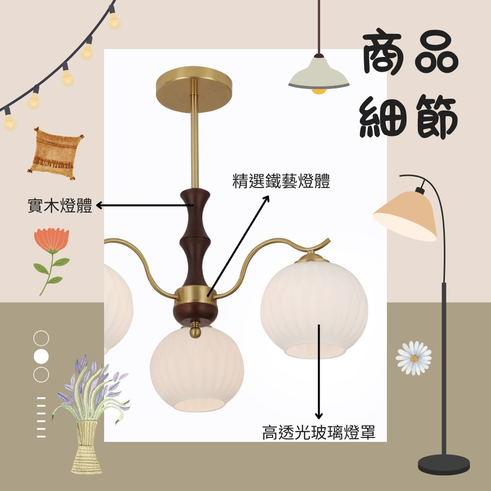 金屬/實木燈體 + 玻璃燈罩