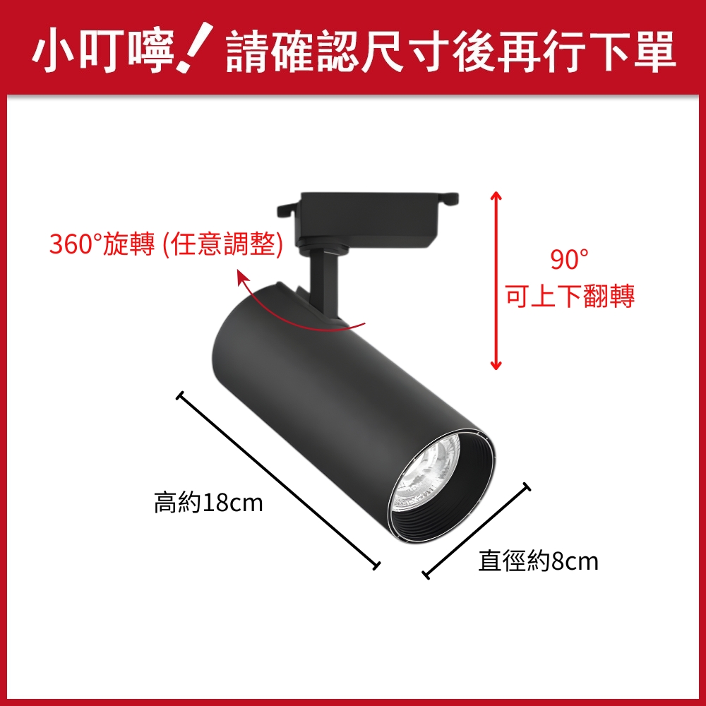 品名 LED 20W COB調光調色軌道燈 (兩色可選/另購遙控器)