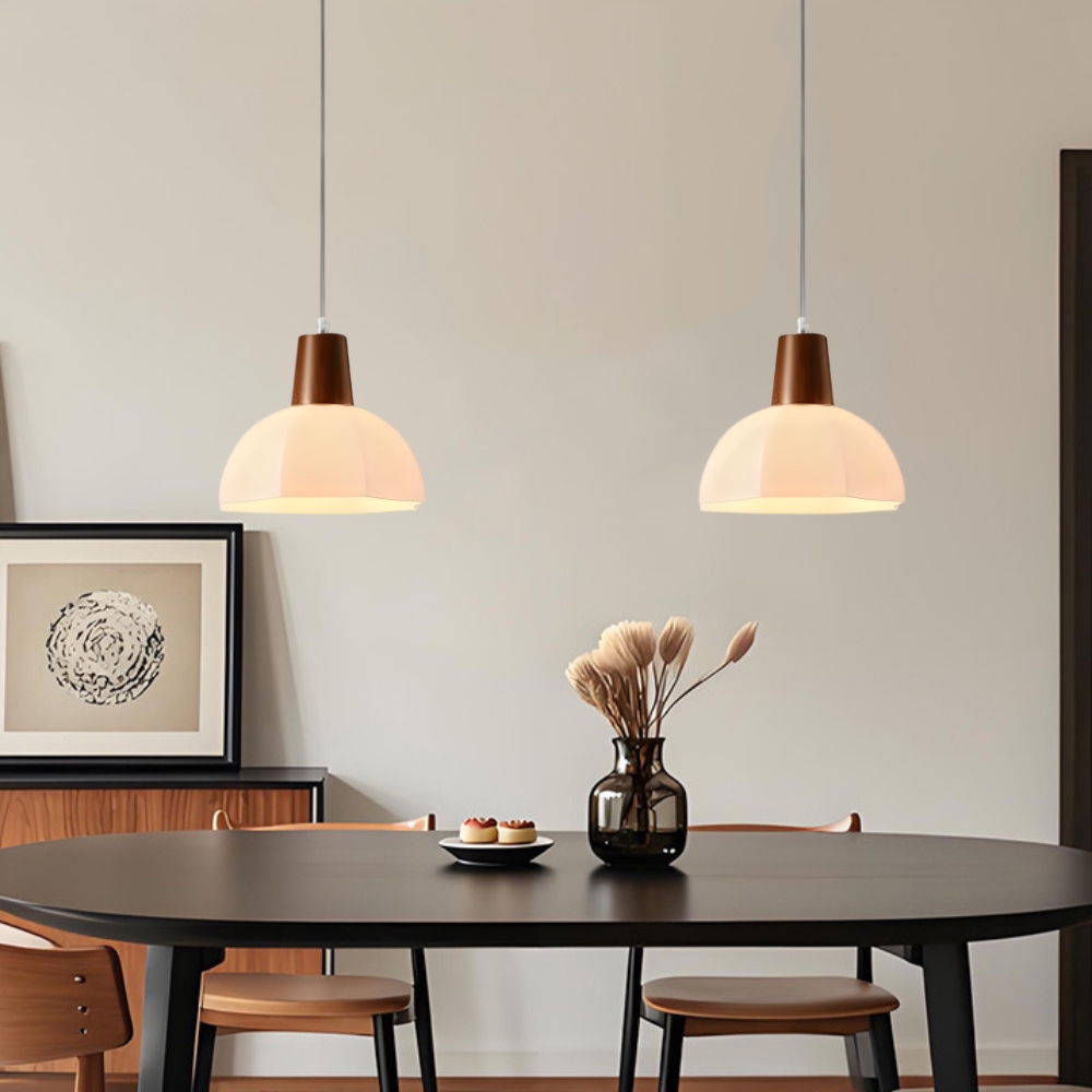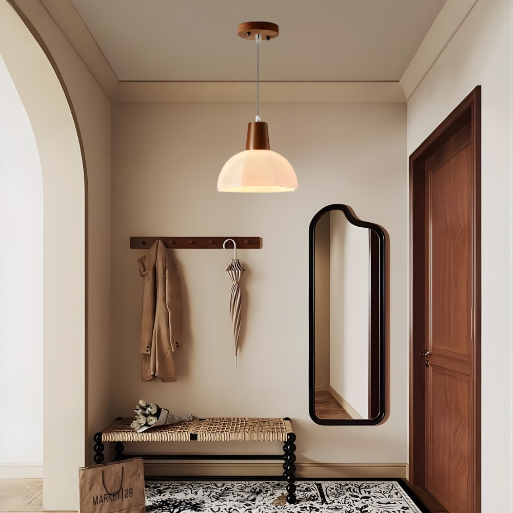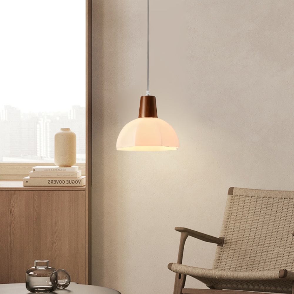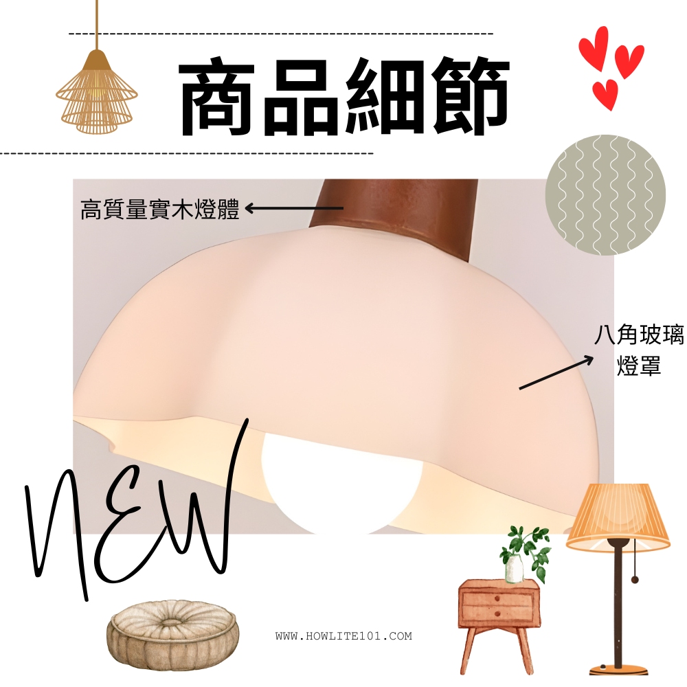 實木燈體 + 玻璃燈罩