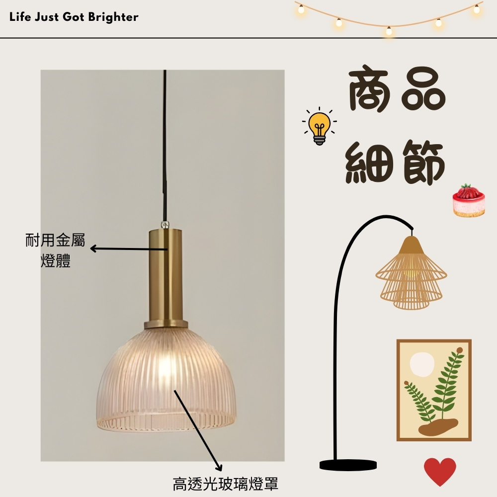 金屬燈體 + 玻璃燈罩