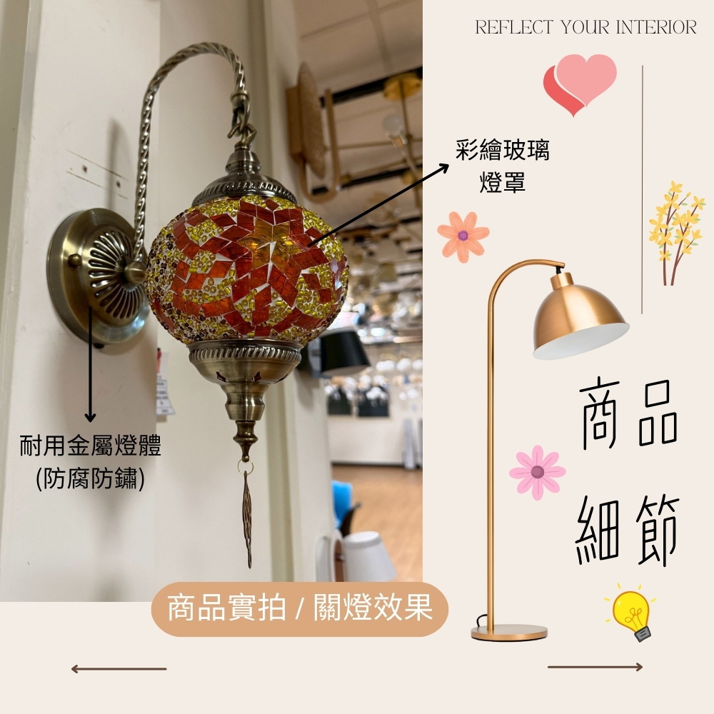 材質 金屬燈體 + 彩繪玻璃燈罩