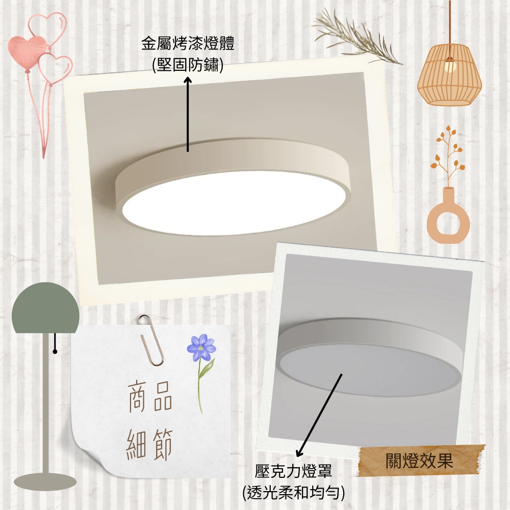 材質 金屬烤漆燈體+壓克力燈罩