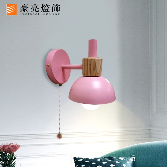(展示品)馬卡龍 40號/木紋+粉壁燈(附:拉線開關)