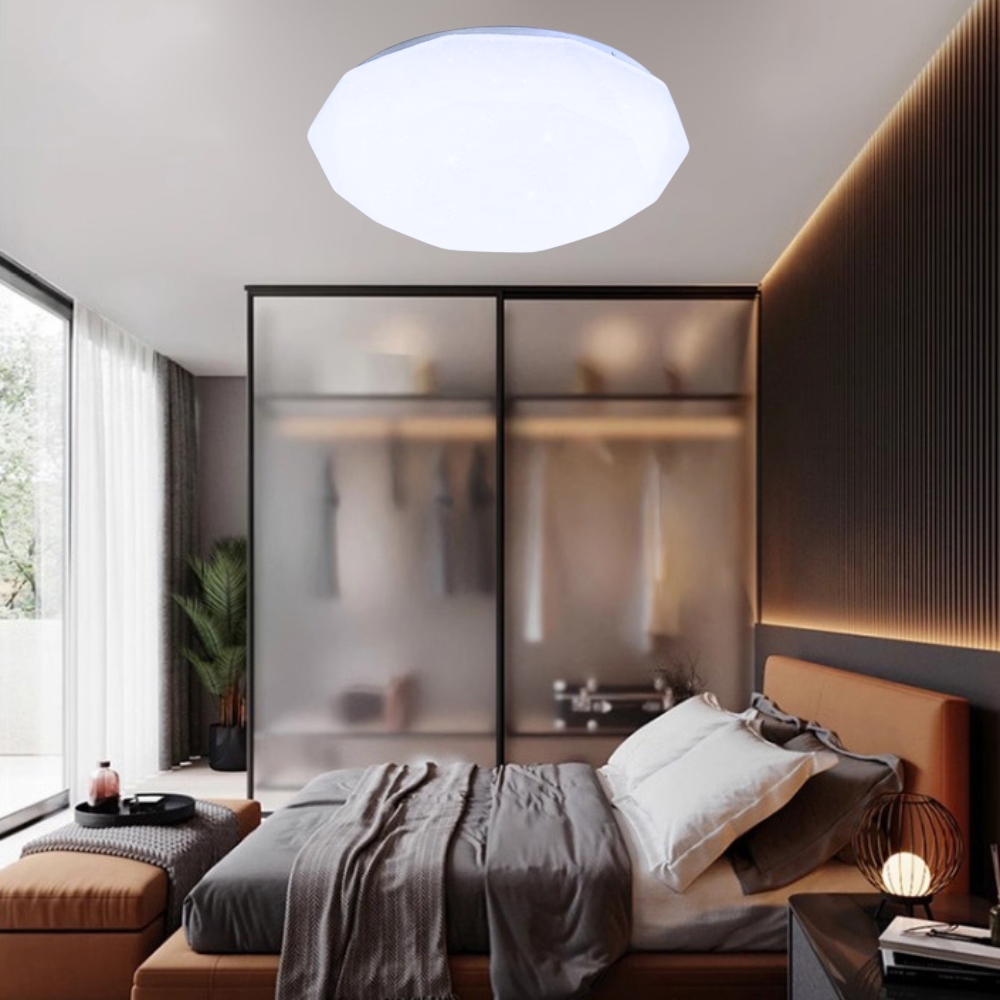 品名 雷諾斯 5+1 燈吸頂燈(壓克力) 材質 金屬燈體+壓克力燈罩 尺寸 直徑 50cm * 高 8cm 光源 另購 E27燈頭燈泡 * 5 + E27燈頭 小夜燈 *1 (1)請使用LED燈泡,不要使螺旋省電/鎢絲燈泡) (2)燈泡尺寸 建議使用 一般 LED 12W 以下大小 【內附 電子IC分段】 一段:亮3燈 二段:亮中間小夜燈 三段:亮5燈 四段:亮2燈+中間小夜燈 適用 約4-6坪