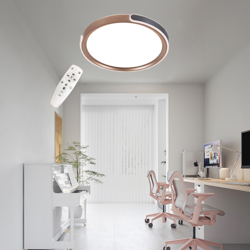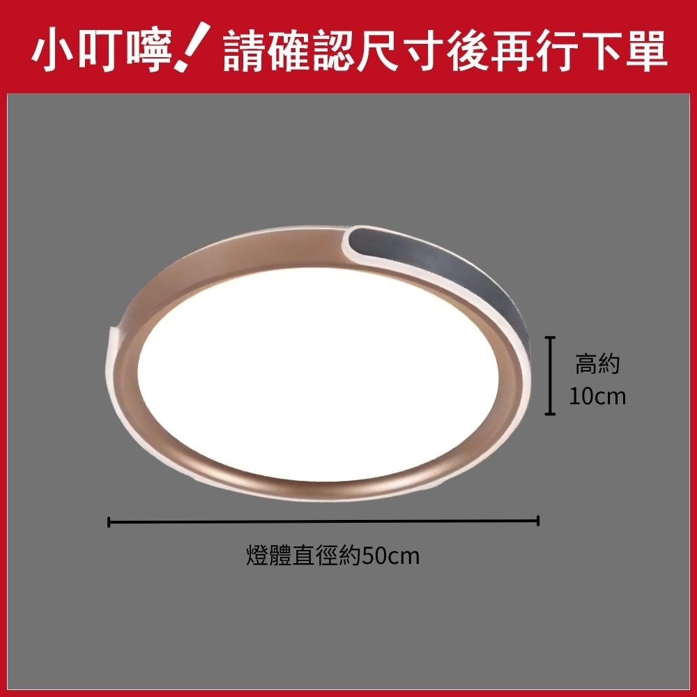 品名 LED 50W(金+灰) 知性調光調色吸頂燈 (附遙控器) 材質 金屬燈體、壓克力燈罩 尺寸 直徑約50cm * 高度約10cm 光源 內附LED 50W光源 (附遙控器/可調光調色) 適用 約4-5坪