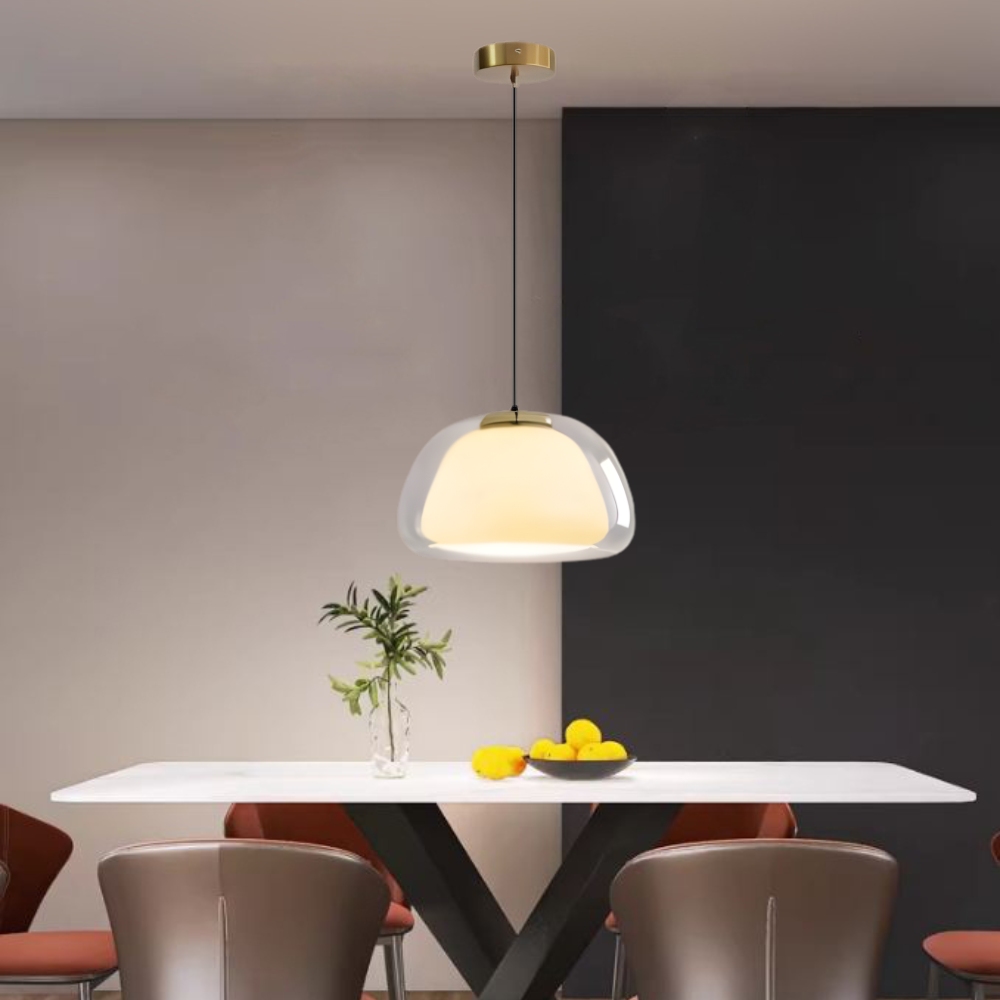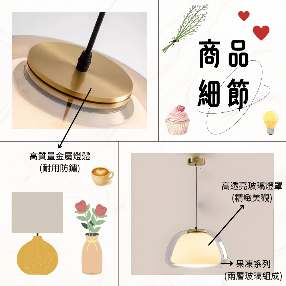 品名 逐光單吊燈 (附E27三色光燈泡) 材質 金屬燈體 + 雙層玻璃燈罩 尺寸 燈體直徑約25cm * 高度約15cm 吸頂盤直徑約12cm (附線約90cm 可縮短調整) 光源 附E27三色光燈泡*1 適用 適用約1坪
